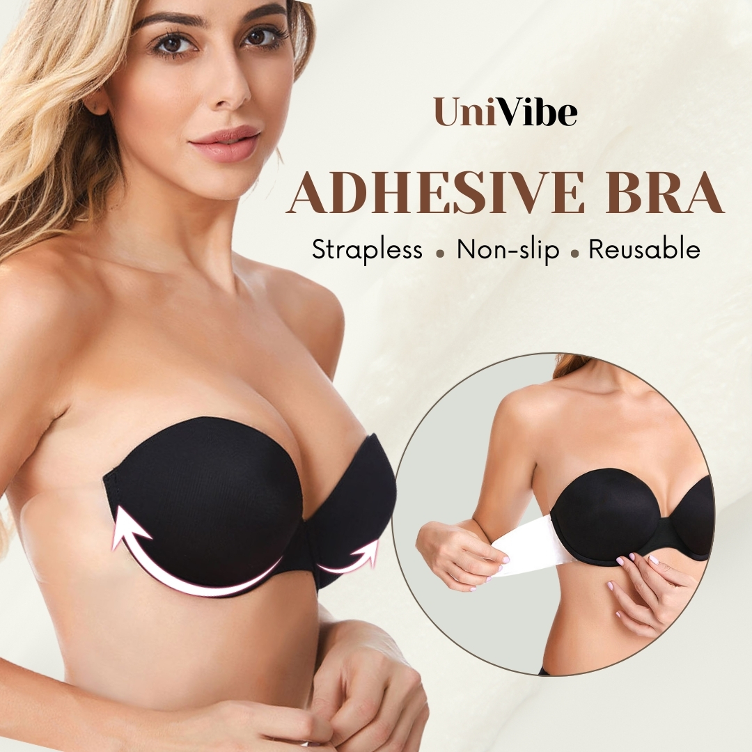 UniVibe adhesive bra provides invisible lift and support with a seamless fit. Transparent firmly stickiness wings plus steel rings prevent sagging and say goodbye to worries of slip-down or discomfort.